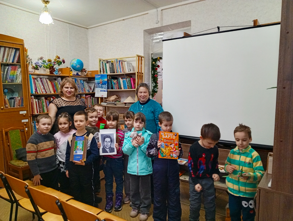 В библиотеке ребята познакомились с биографией поэтессы, ее творчеством. Ребят познакомили с отрывками произведений, отгадывали загадки, самостоятельно читали стихи из цикла «Игрушки», показывали сюжет стихотворений действиями.
