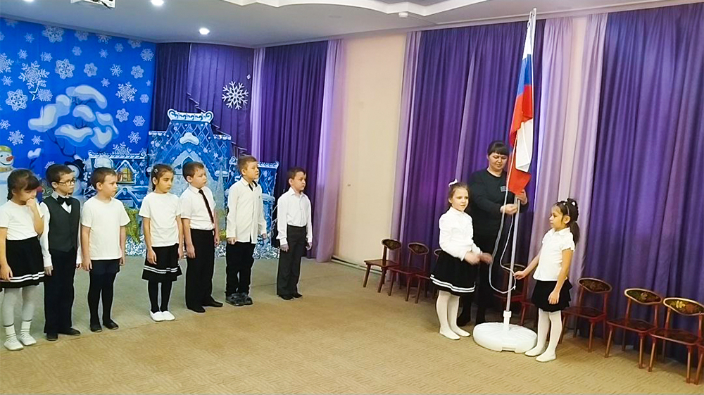 Затем провели еженедельную церемонию поднятия флага Российской Федерации.