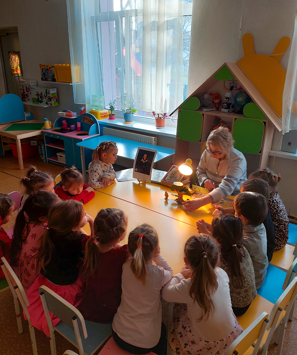 Ребята посмотрели театр на столе по знаменитому отрывку из поэмы А. С. Пушкина «Руслан и Людмила, У Лукоморья дуб зелёный…».