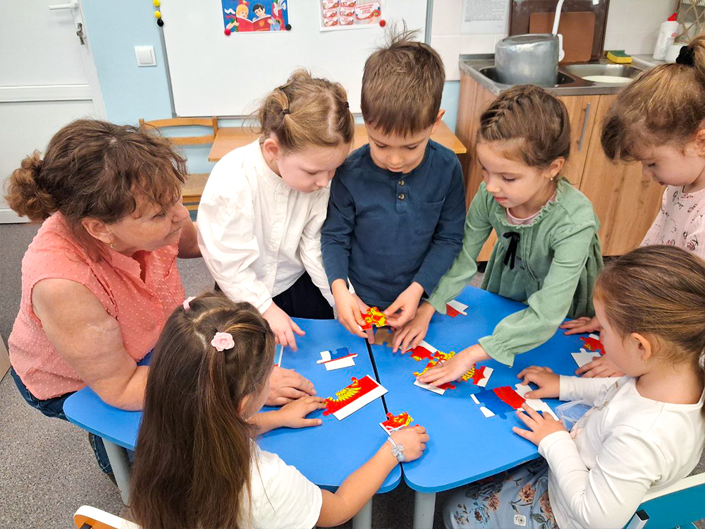 Воспитанники старшей группы ознакомились с понятием «закон», «порядок», «право», повторили государственную символику: флаг, герб. Поиграли в дидактическую игру «Сложи герб».