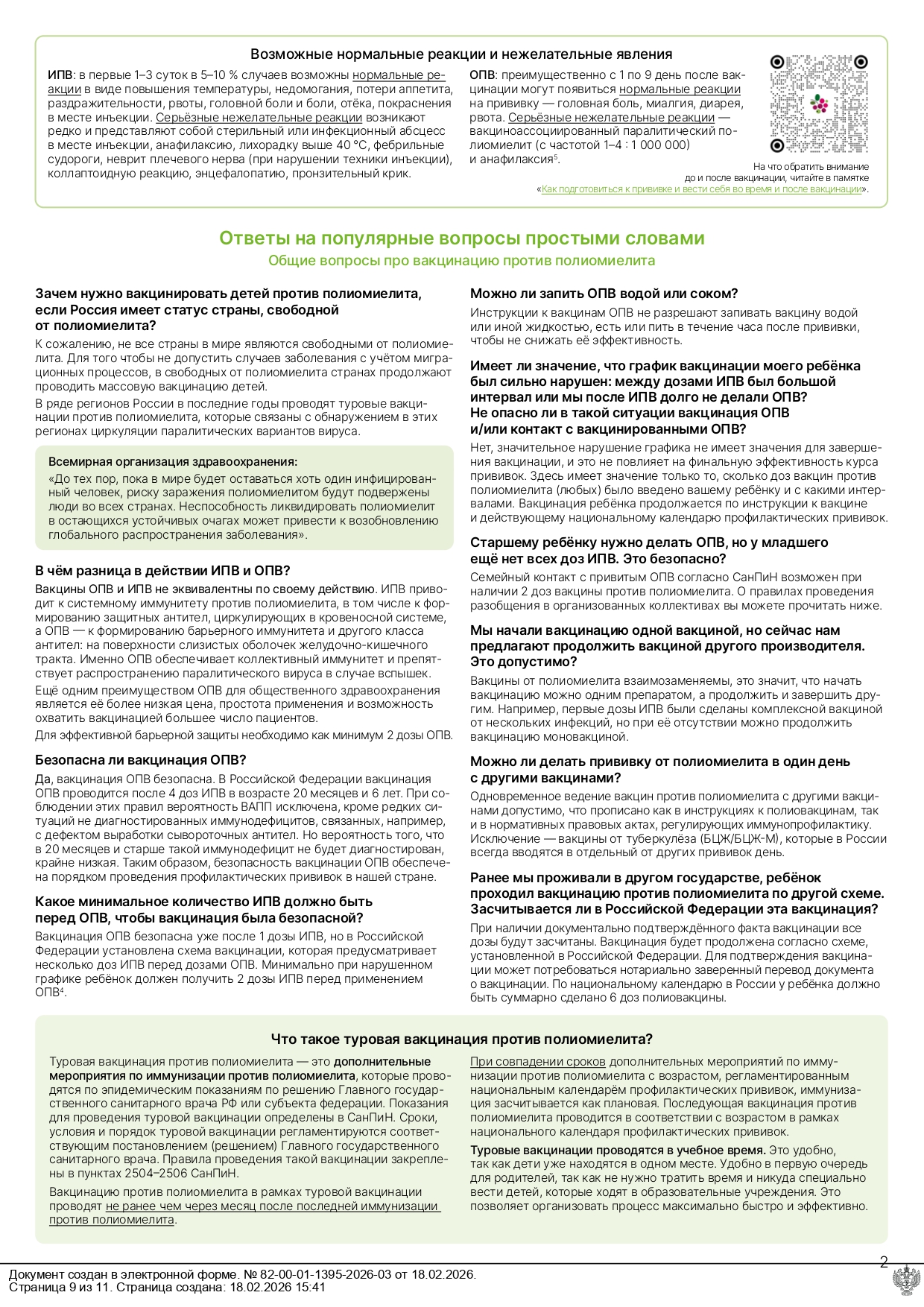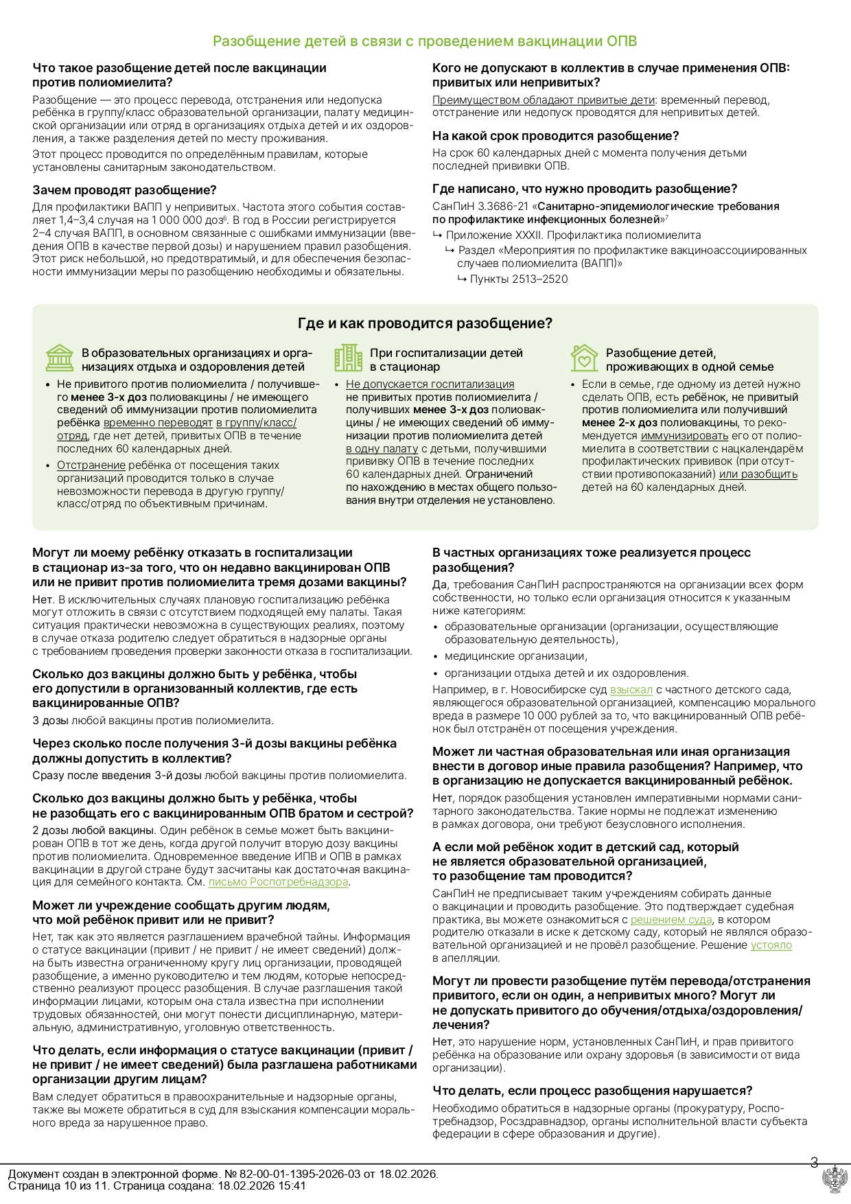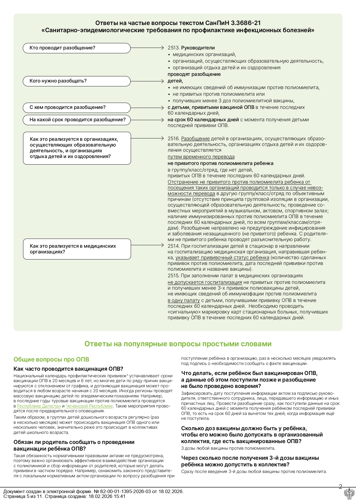 Разобщение детей в связи с проведением вакцинации оральной полиовирусной вакциной (ОПВ)