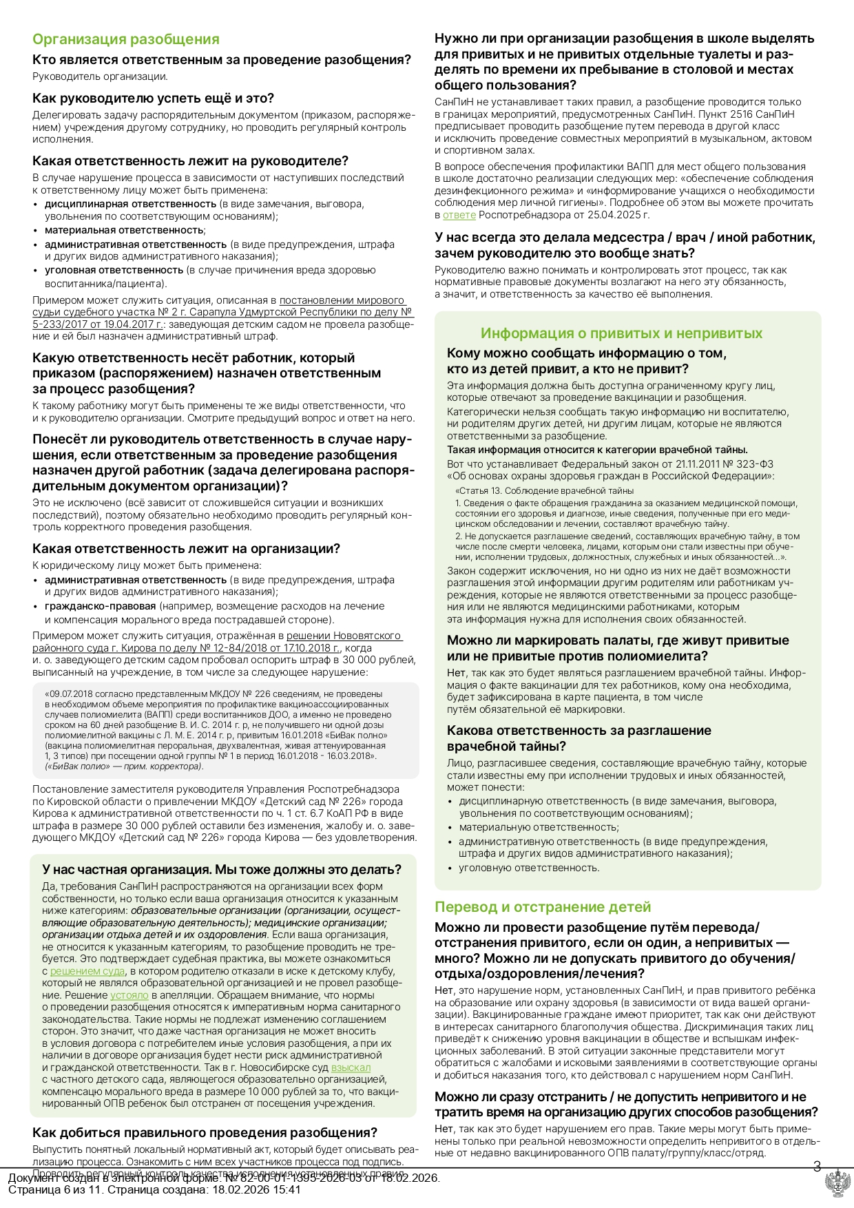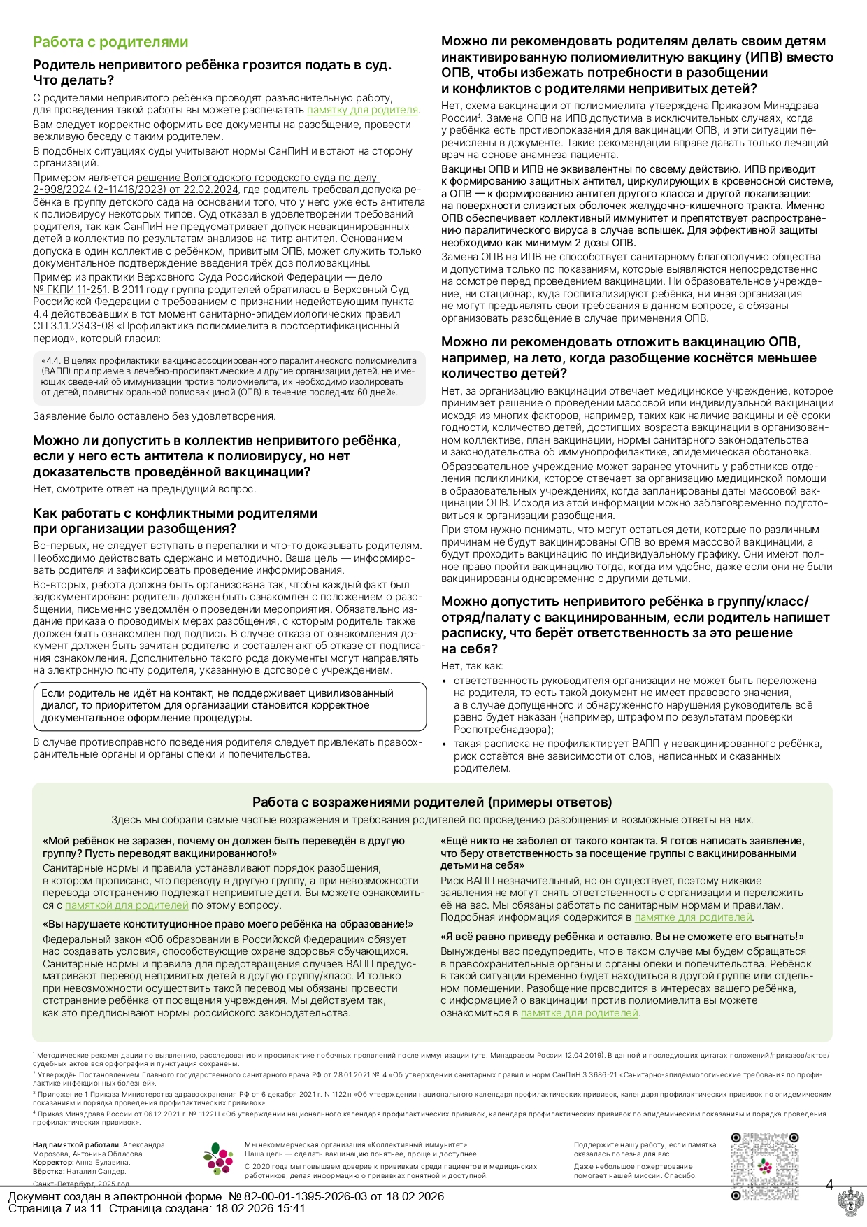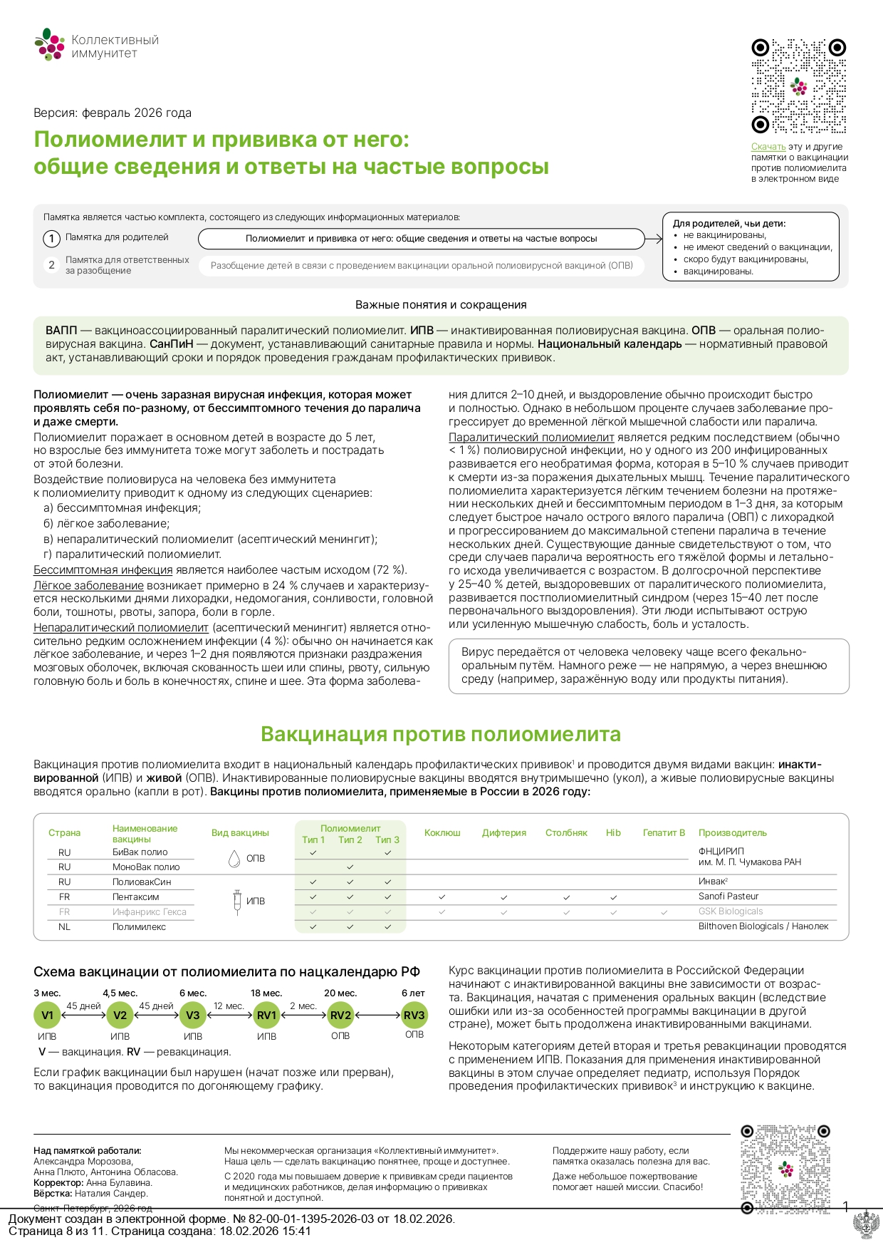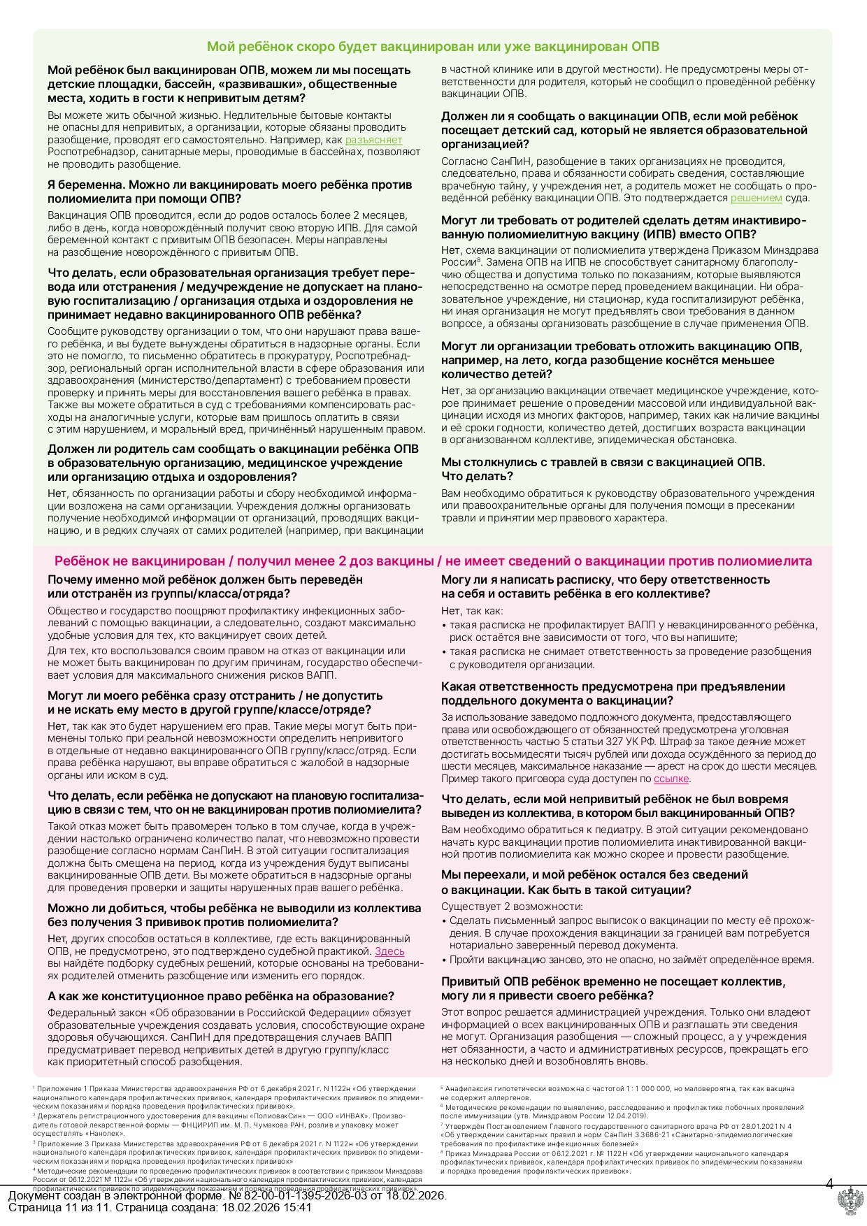 Разобщение детей в связи с проведением вакцинации оральной полиовирусной вакциной (ОПВ)