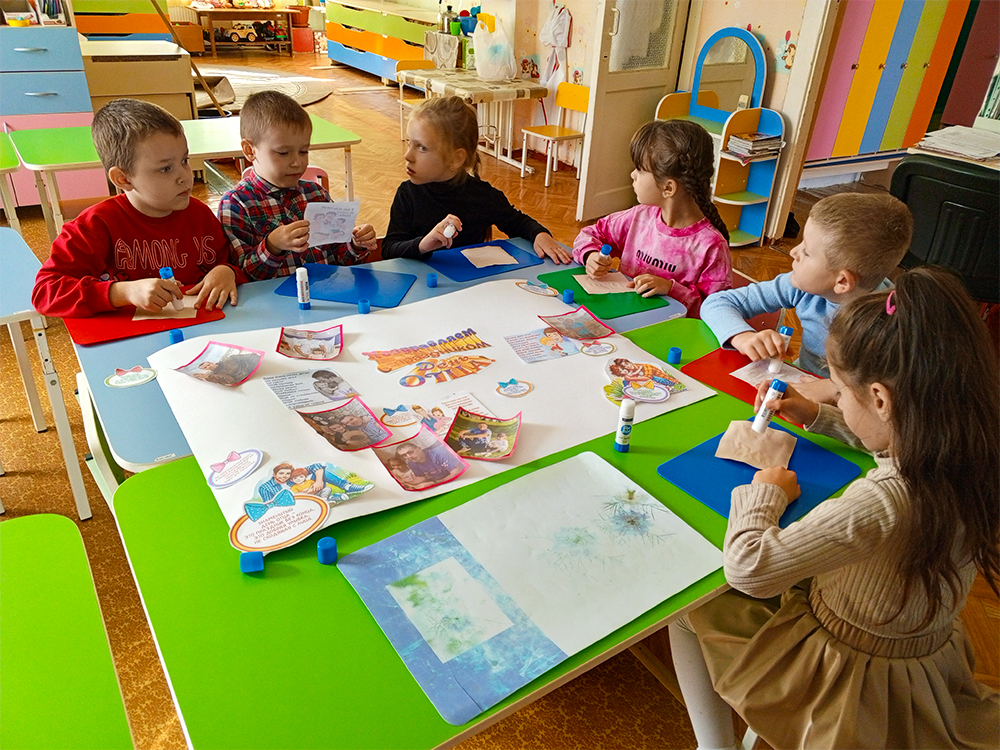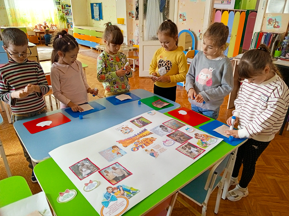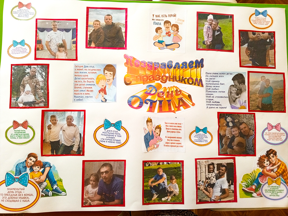 Ребята с удовольствием наклеивали фотографии с папами, поздравления и делились друг с другом впечатлениями.