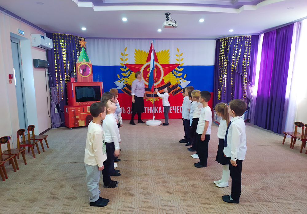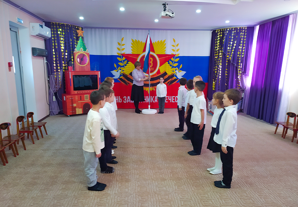 16 февраля еженедельная церемония поднятия государственного флага России произошла в группе Дружная семейка