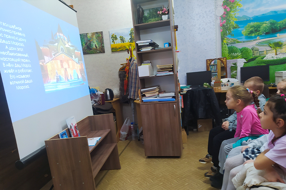 Во время просмотра презентации узнали, где живёт Дед Мороз, где почту принимает, увидели его зоосад. В конце встречи посмотрели мультфильм «Дед Мороз и серый волк».