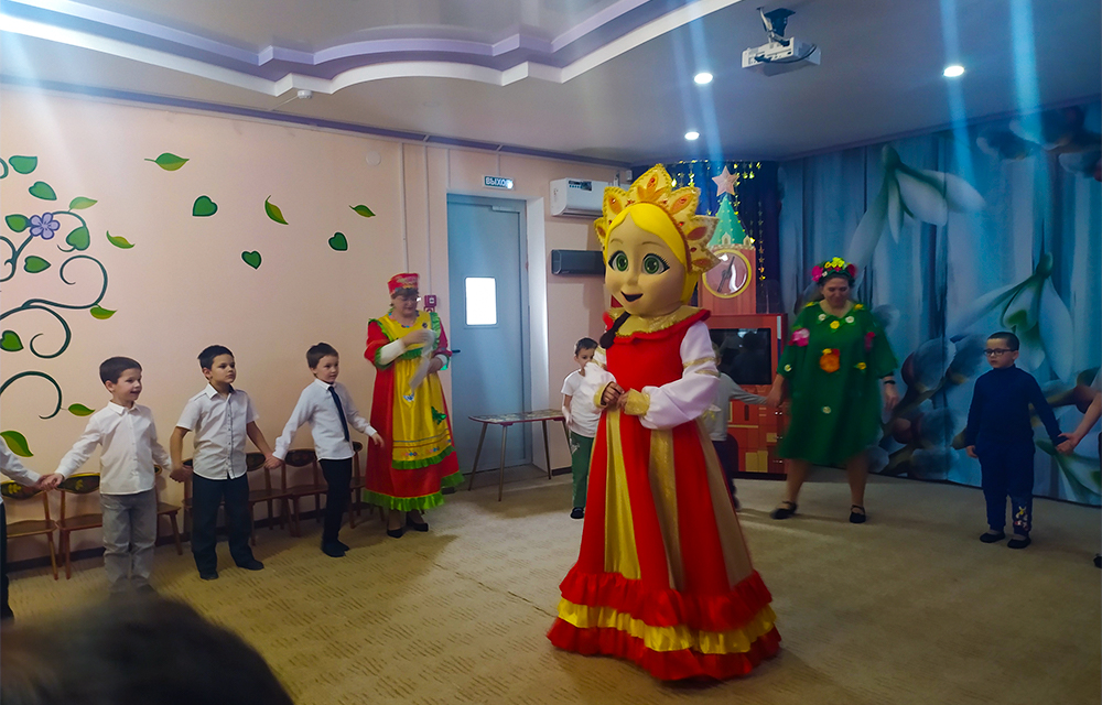 Ребята подготовительных групп Птички и Дружная семейка с радостью ожидали этой встречи. Вместе с гостьей они замечательно повеселились: отгадывали загадки, испытывали свою силу и ловкость, водили хороводы, а также играли в русские народные игры «Заря-заряница», «Блинок». Зимушка-зима прогоняла Весну со двора, не уступала ей свое место.